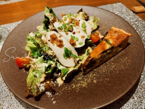 前菜のサラダとキッシュ。このキッシュがまた、味が濃厚で最高に美味しかった・・・!ホール(?)で食べたいくらい。オススメです!あ、写真は1人前ですよ。