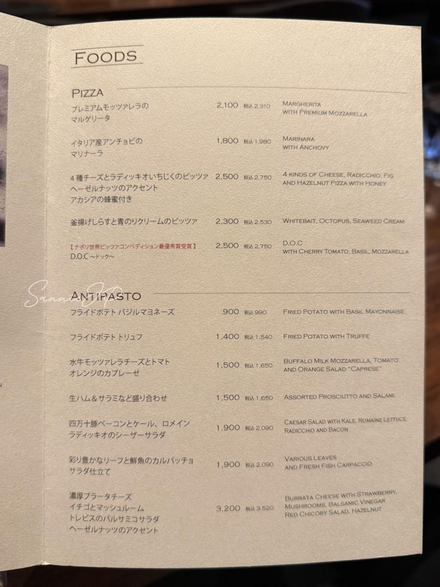 メニューも撮っていたので、下記に掲載します。ご参考まで