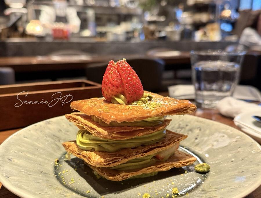 毛利 Salvatore Cuomoで注文したイチゴとピスタチオのミルフィーユで、六本木カフェらしい華やかさが伝わる