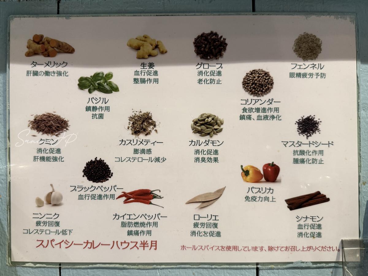 カウンターの側面には、表のガラスにも貼ってあったスパイスの紹介が。