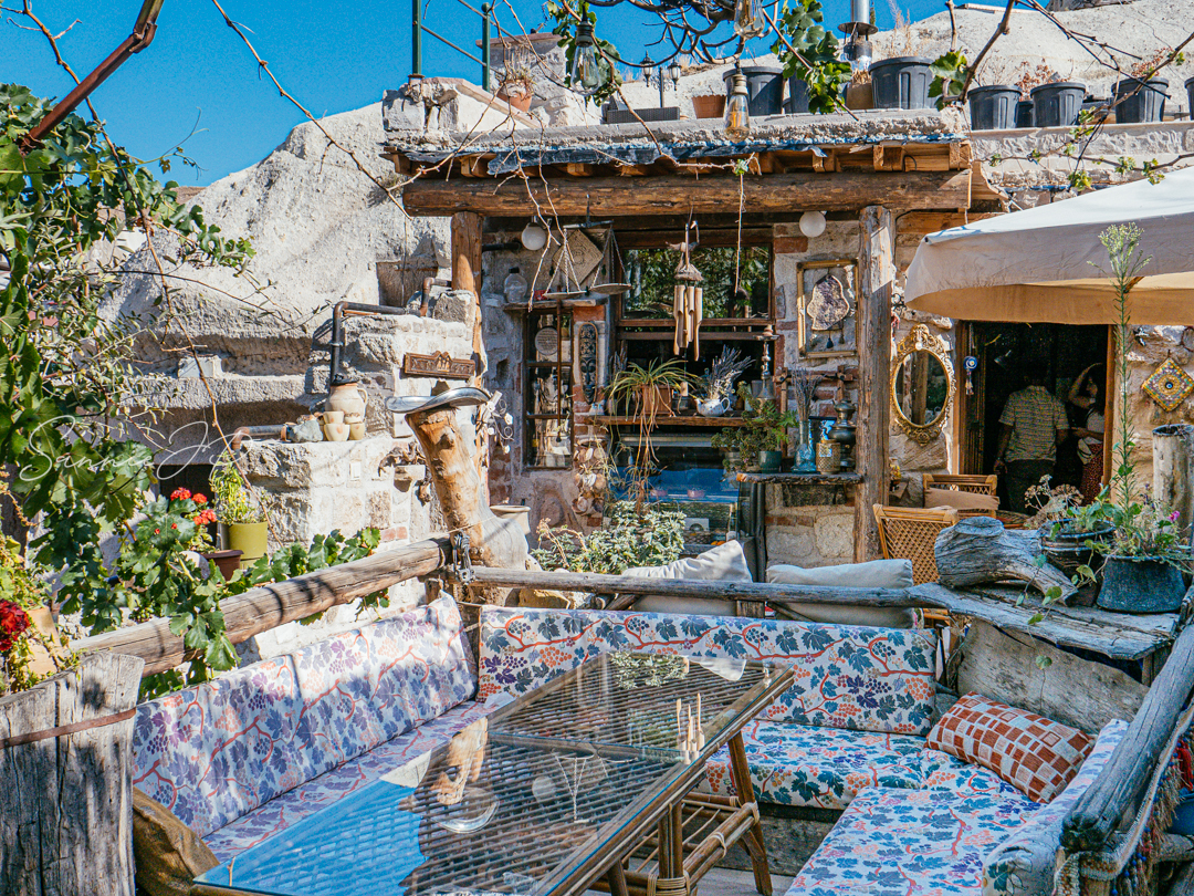 トルコ 【個性派カフェ】カッパドキア・ギョレメ「Omurca Art Cave Cafe」|洞窟×アート×オーナーのこだわりが織りなす穴場 カッパドキア・ギョレメで訪れたい「Omurca Art Cave Cafe」。洞窟を改装した店内にはアート作品やアンティークが並び、ガーデンテラスやパラソル席など多彩な空間を楽しめます。静かな立地で観光客も少なく、ゆったり過ごせる穴場カフェ。旅の思い出作りにおすすめです。 トルコ