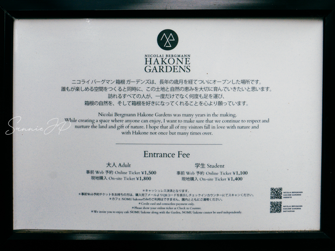 手前の小さな看板には、ニコライ・バーグマン 箱根ガーデンズに対しての思いが書いてあります。