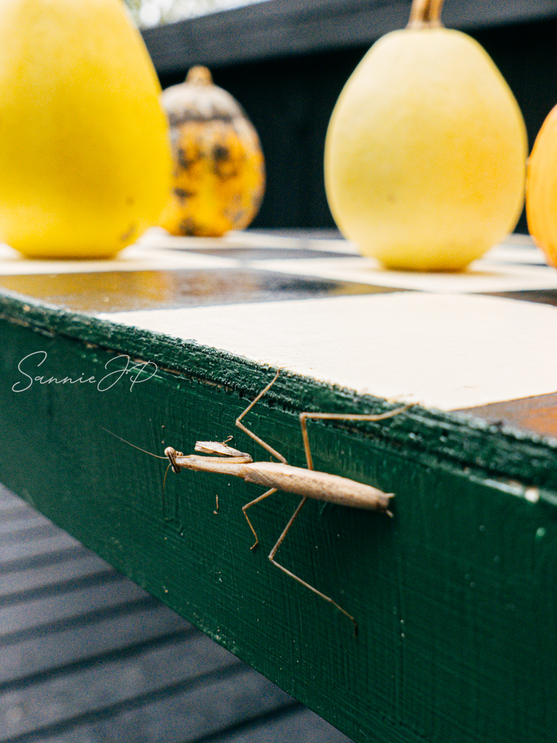 茶色のかまきり。子供の頃も、大人になった今でも怖くて触れないけど。(笑)