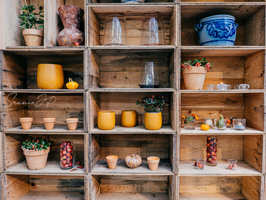 オープンの棚にも、花瓶や植木鉢などが可愛くディスプレイしてありました。