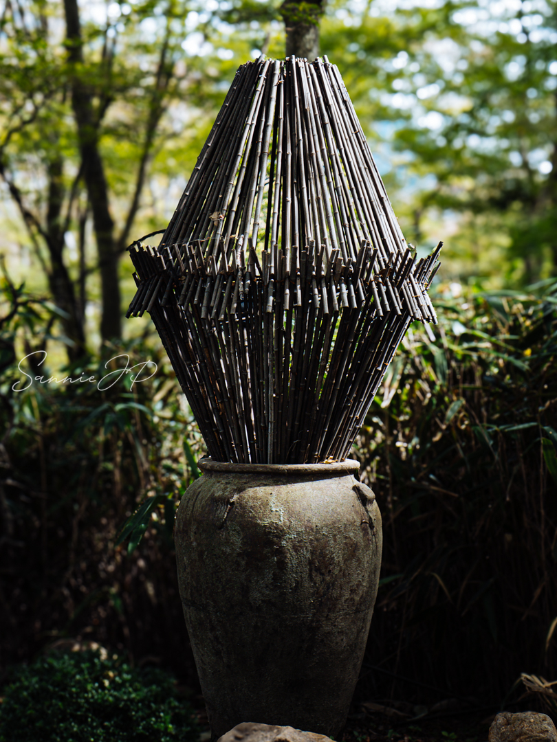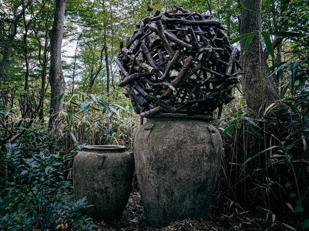 敷地内の後半には、おそらく敷地内の素材で作ったであろうアート作品もありました。