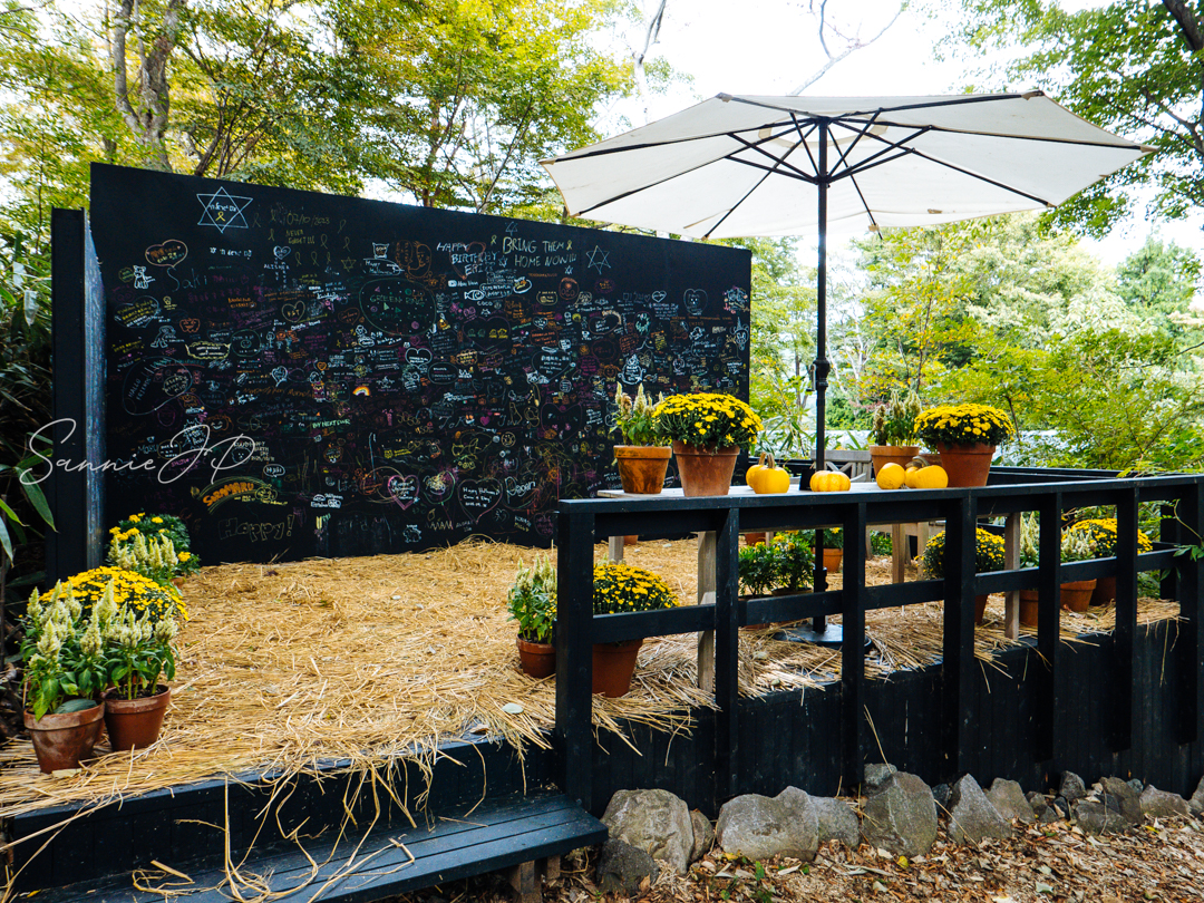 訪れた人たちなのか、寄せ書きのボードがあるテラスもありました。